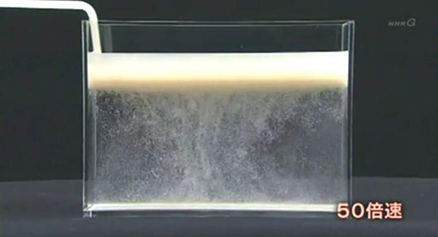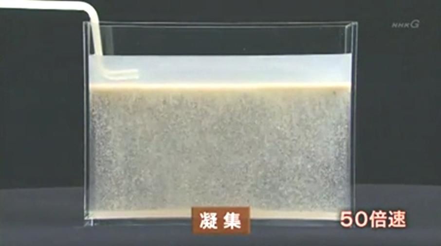 La substance radioactive comme le césium qui descend de la montagne à la plaine, arrive à la rivière ou au fleuve. Ensuite, le césium, de charge électrique positive, est pris par une particule argileuse de charge électrique négative, et ils se déplacent bien attachés désormais ensemble.