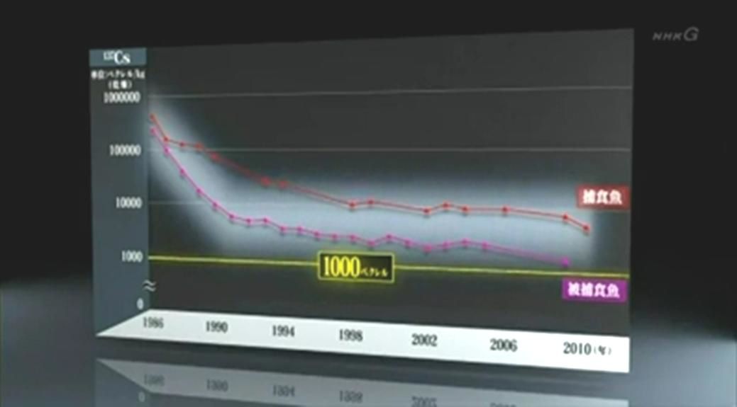 Leurs rapports montrent que les premières cinq années, le taux de césium dans les poissons avait baissé. Ensuite le taux ne diminue pas beaucoup. Il faudra attendre 30 ans, pour qu'il diminue de moitié.