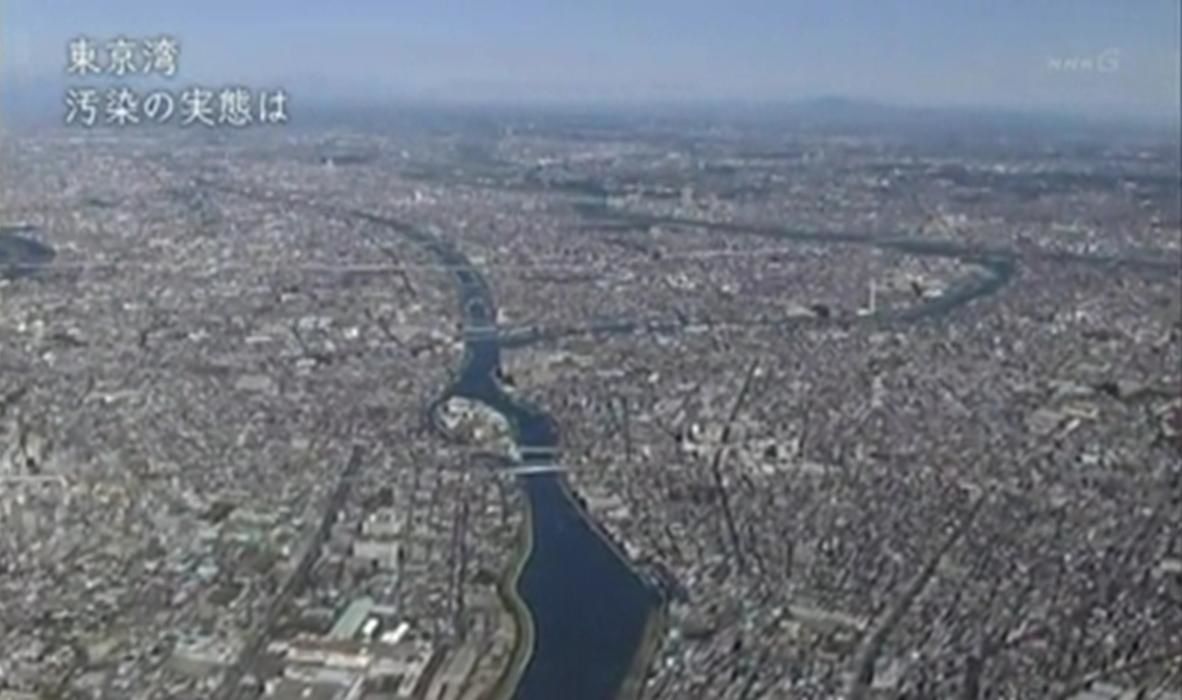 transportées par les rivières qui se jettent à la baie de Tokyo :